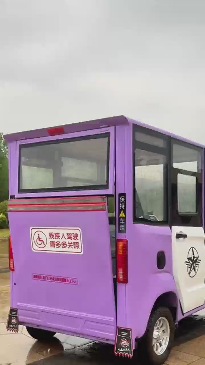 Closed electric four-wheeled vehicle for the disabled